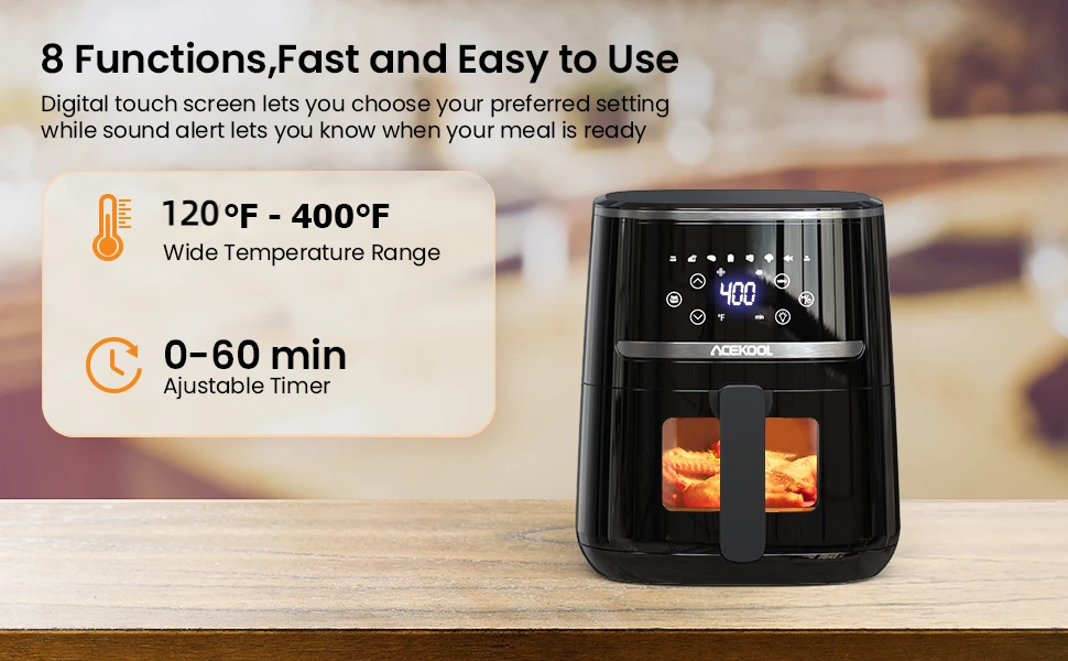 -Healthier Cooking Options- The air fryer uses 360°hot air circulation allowing “deep frying” with less oil or no oil at all!