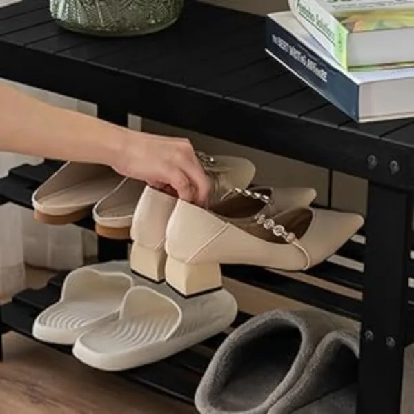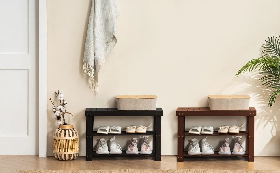 SHOE BENCH AND STORAGE- Each shoe rack shelf accommodates up to 3 pairs of shoes being an ideal size of 27.6″ long x 11″ deep x 17.7″ tall.
