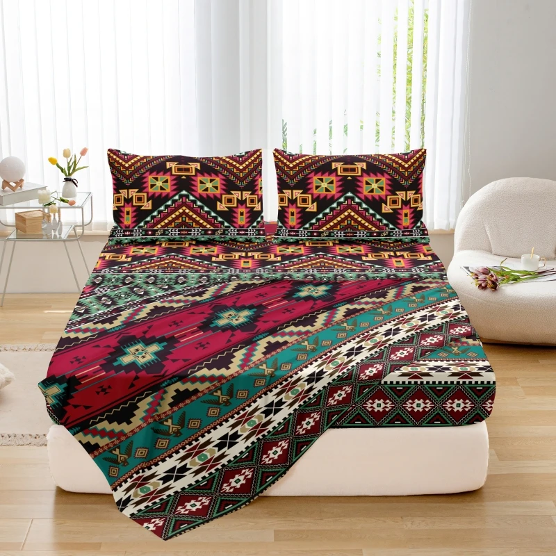 Our Bohemian Bedding Set is (3) THREE Pieces of soft brushed fitted sheet and matching pillow case(s) with enough style to dress the bed as is!